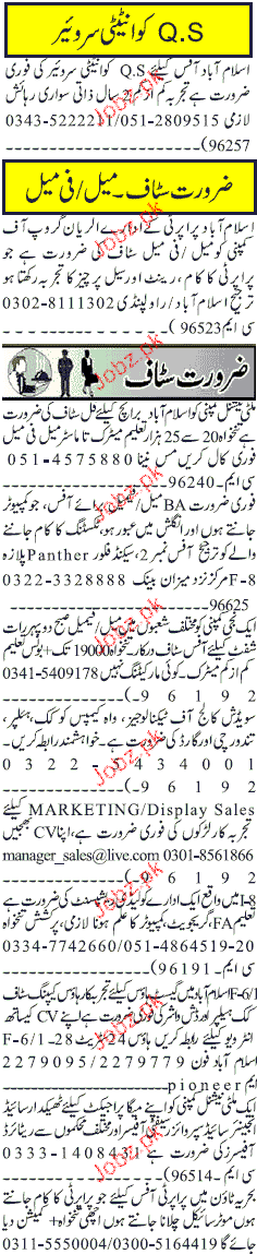 Apply as per details in job advertisement. Login to view further details of how to apply via https://www.jobz.pk online.