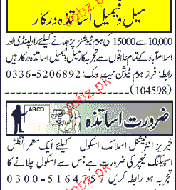 Latest Private Company Teaching Posts Rawalpindi 2025