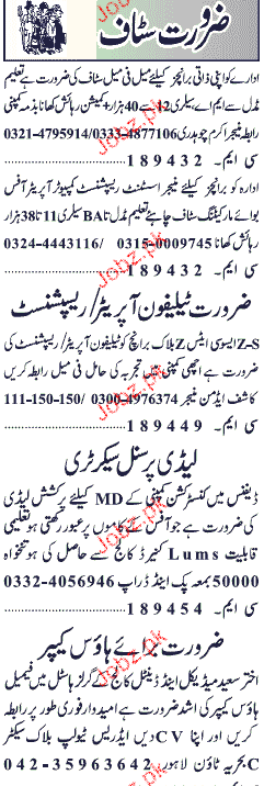 Latest Private Company Telephone Operator Posts Lahore 2025