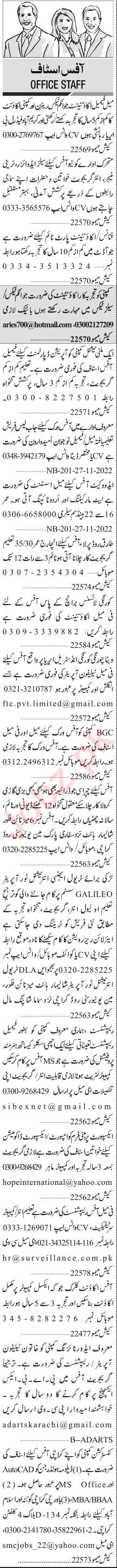 Jang Karachi Sunday Classified Secretarial Staff Jobs 2022