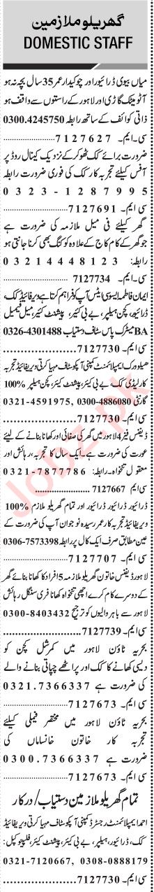 Jang Sunday Classified Ads 1 Jan 2023 for Domestic Staff
