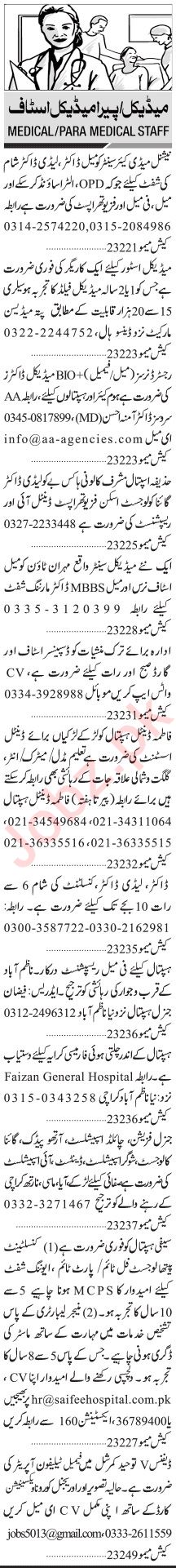Jang Sunday Classified Ads 1 Jan 2023 For Medical Staff