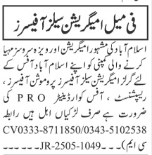 Immigration Firm is looking for candidates for following posts as per job advertisement published in daily Jang Newspaper of June 2, 2025 for location Islamabad, islamabad Islamabad Pakistan: