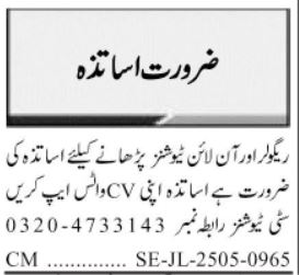 Jang Sunday Classified Ads 1 June 2025 for Teaching Staff