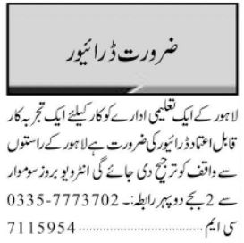 Jang Sunday Classified Ads 10 April 2022 For Driving Staff