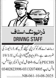 Jang Sunday Classified Ads 10 Aug 2025 For Driving Staff