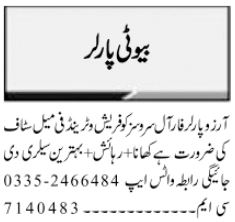 Vacant posts including beautician and beauty parlor staff are announced in Arzoo Beauty Saloon Multan, multan Punjab Pakistan as per 11 December 2023 advertisement in daily Jang Newspaper. Preferred Education is Middle, Matric and Intermediate etc.