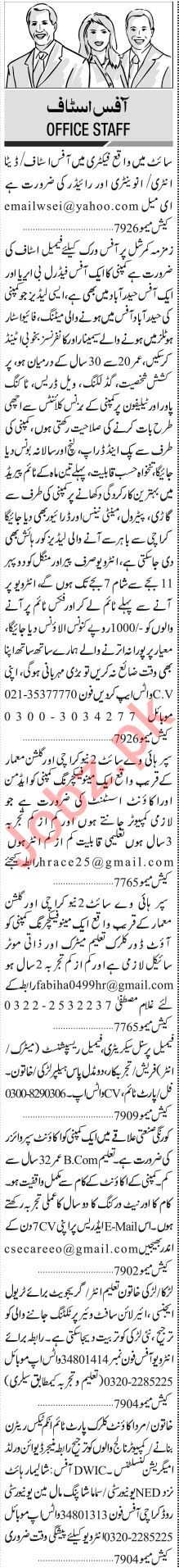 Jang Sunday Classified Ads 10 Jan 2021 for Office Staff