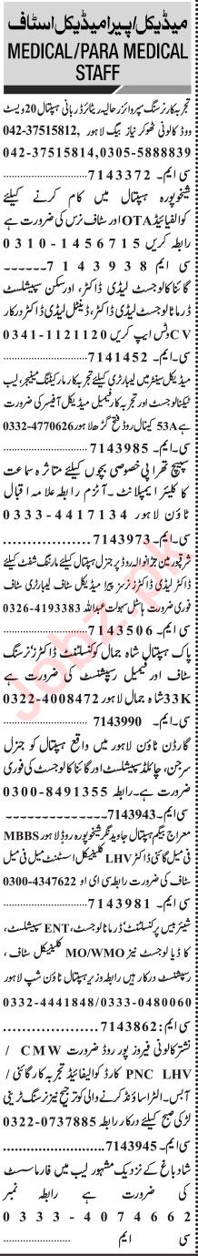 Jang Sunday Classified Ads 10 March 2024 for Medical Staff