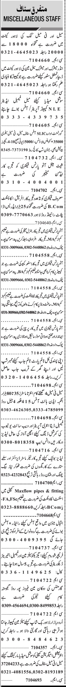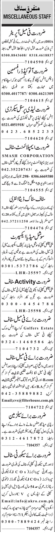 Account Manager, Office Assistant, Salesman, Marketing Staff, Sales Staff, Computer Operator, Sales Manager, Sales Officer, Secretary, Personal Secretary, Peon, Lady Accountant, Graphic Designer, Public Relation Officer, PRO, Assistant, Call Representative, Lady Office Assistant, Front Desk Officer, Cashier, Customer Service Representative, CSR, Lady Receptionist, Security Guard needs in well reputed companies.