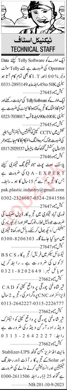 Jang Sunday Classified Ads 10 Sep 2023 For Technical Staff