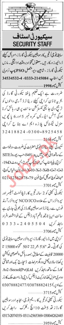 Jang Sunday Classified Ads 10th March 2019 Security Staff