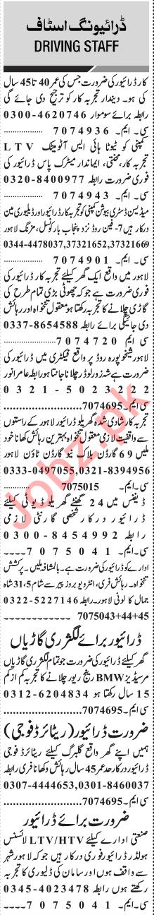 Jang Sunday Classified Ads 10th Nov 2019 for Driving Staff