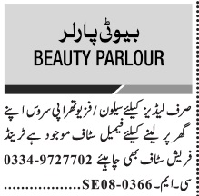 Vacancies in Beauty Parlor Advertisement August 2024