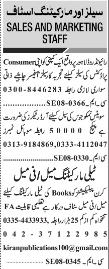 Vacant posts including order taker, telemarketing officer and sales officer are announced in Marketing Company Lahore, lahore Punjab Pakistan as per 11 August 2024 advertisement in daily Jang Newspaper. Candidates with Matric, Intermediate, Middle, BA and Bachelor etc. educational background will be preferred.