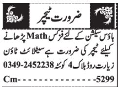 Private School invites applications for job positions advertised in daily Jang dated 12 August 2024 for following vacancies in Quetta, quetta Balochistan Pakistan.