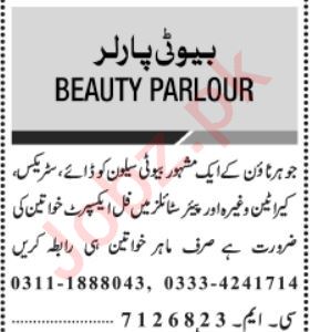 Beauty Parlor invites applications for job positions advertised in daily Jang dated 12 December 2022 for following vacancies in Lahore, lahore Punjab Pakistan.