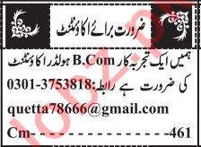 Business Analyst, General Accountant, CPA, Accounting Supervisor, Project Accountant, Staff Accountant, Cost Accountant, Accountant, Auditor, Accounts Officer, Assistant Accounts, Internal Auditor, External Auditor, General Manager Finance, Finance Officer needs in well developed companies.