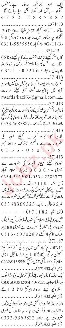 Jang Sunday Classified Ads 11 June 2023 For General Staff