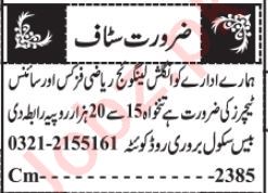 Jang Sunday Classified Ads 11 June 2023 for Teaching Staff