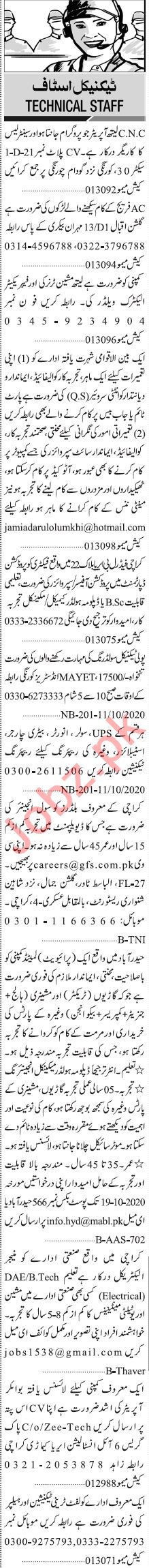Jang Sunday Classified Ads 11 Oct 2020 For Technical Staff
