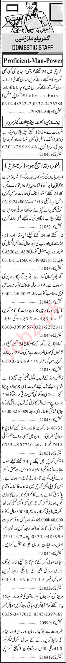 Jang Sunday Classified Ads 11 Sept 2022 For Domestic Staff