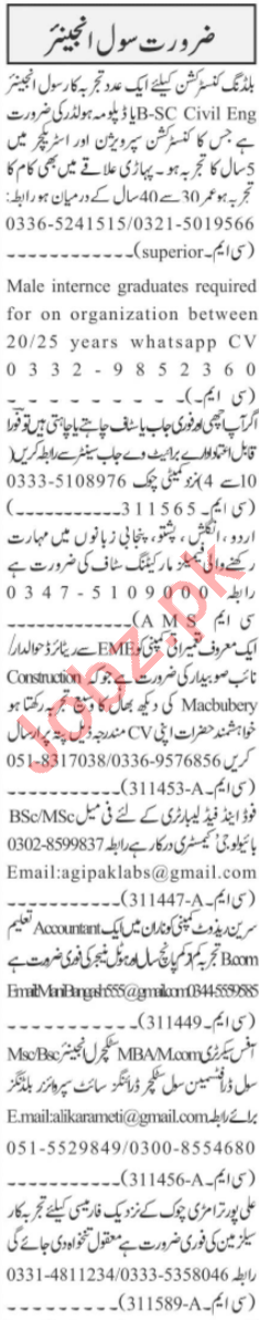 Jang Sunday Classified Ads 12 April 2020 For Multiple Staff