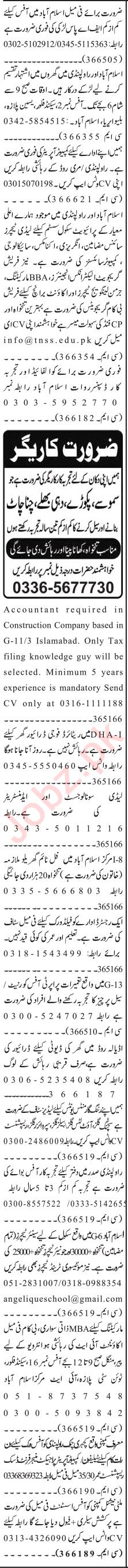 Vacant posts including office boy, receptionist, administrator, real estate agent, accountant, dispenser, house maid, economics teacher, project manager, purchaser, english teacher, teacher, montessori teacher, front desk officer, computer operator, lady teacher, driver, sonologist, field worker, worker, office staff, physiology teacher, engineer, office assistant, sales officer, marketing manager, telephone operator, cook, computer sciences teacher, marketing officer, ltv driver, science teacher, electronics engineer and sales supervisor are announced in Private Company Islamabad, rawalpindi Islamabad Pakistan as per 13 February 2023 advertisement in daily Jang Newspaper. Educational qualifications required Matric, Bachelor, MBBS, Middle, MBA, Intermediate, Others and DAE etc.