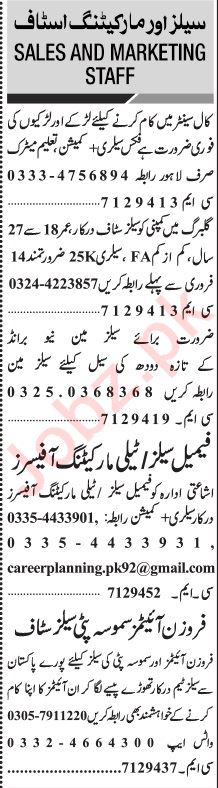 Jang Sunday Classified Ads 12 Feb 2023 for Sales Staff