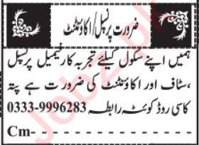 Private School jobs advertisement dated about 13 February 2023 in daily Jang Newspaper invites application for the vacant post of accountant and principal in Quetta, quetta Balochistan Pakistan. Educational qualifications required Bachelor and Master etc.