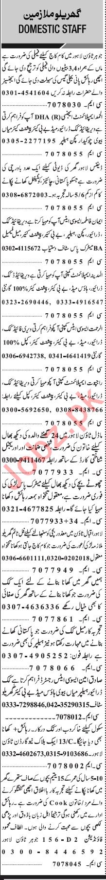 Jang Sunday Classified Ads 12 Jan 2020 For House Staff