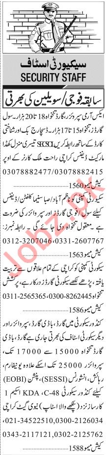 Jang Sunday Classified Ads 12 Jan 2020 For Security Staff
