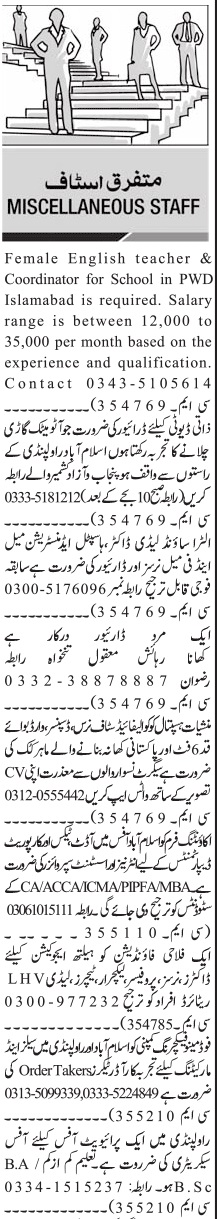 Jang Sunday Classified Ads 12 June 2022 For Admin Staff