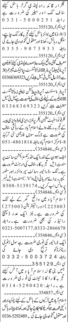 Private Company is looking for candidates for following posts as per job advertisement published in daily Jang Newspaper of June 13, 2022 for location Rawalpindi, islamabad Punjab Pakistan: