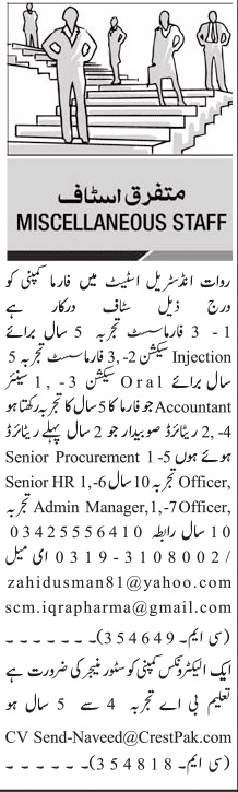 Private Company jobs advertisement dated about 13 June 2022 in daily Jang Newspaper invites application for the vacant post of pharmacist, procurement officer, accountant, admin manager, store manager and hr officer in Rawalpindi, islamabad Punjab Pakistan. Educational qualifications required Matric, Intermediate, Middle and Bachelor etc.
