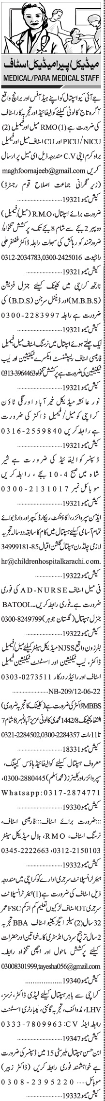 Jang Sunday Classified Ads 12 June 2022 For Medical Staff