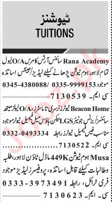 Jang Sunday Classified Ads 12 March 2023 For Home Tutor