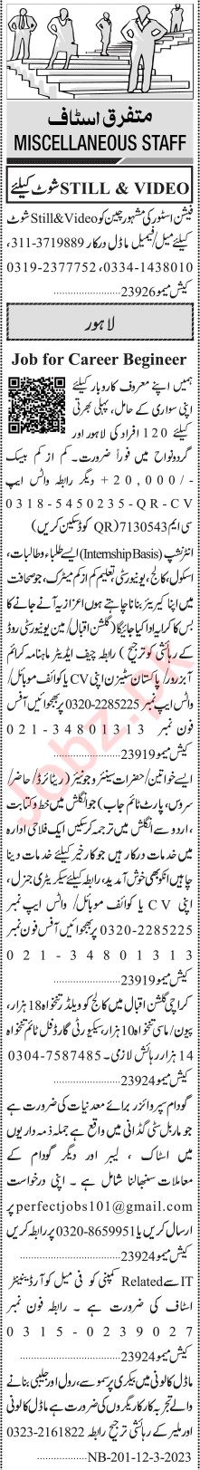 Jang Sunday Classified Ads 12 March 2023 for Multiple Staff