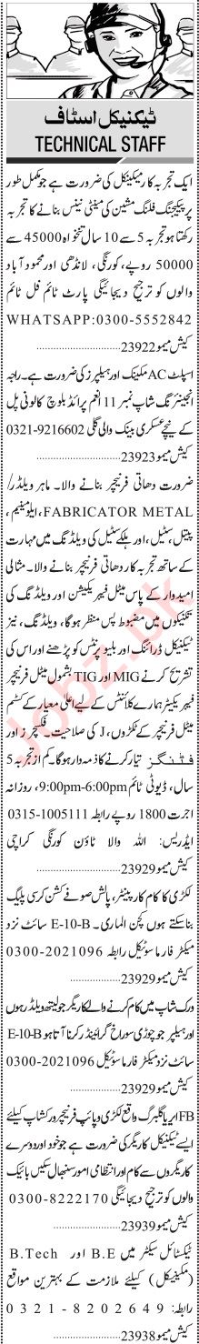 Jang Sunday Classified Ads 12 March 2023 For Technical Staff