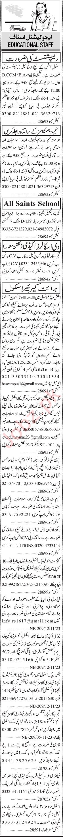 Jang Sunday Classified Ads 12 Nov 2023 for Educational Staff