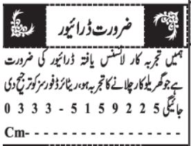 Jang Sunday Classified Ads 12 Oct 2025 for Driving Staff