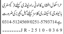 Hira School & College is looking for candidates for following posts as per job advertisement published in daily Jang Newspaper of October 13, 2025 for location Afshan Colony Rawalpindi, rawalpindi Punjab Pakistan: