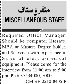 Private Company jobs advertisement dated about 13 October 2025 in daily Jang Newspaper invites application for the vacant post of office manager, manager and salesman in Lahore, lahore Punjab Pakistan. Intermediate, MBA and Master etc. educational qualification will be preferred.