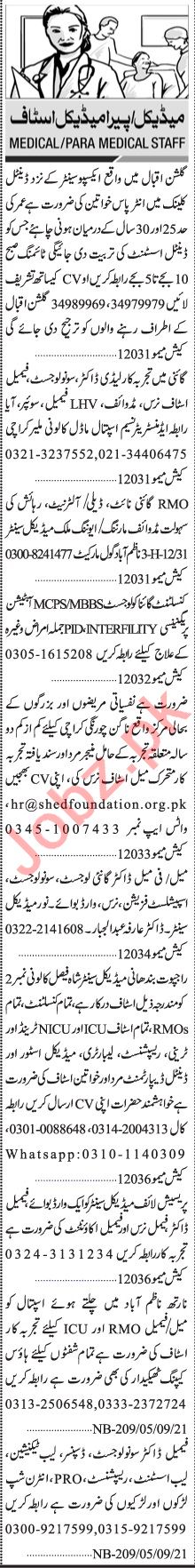 Jang Sunday Classified Ads 12 Sep 2021 For Medical Staff