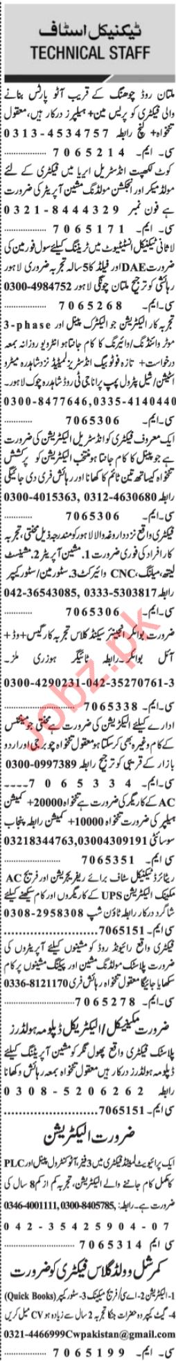 Jang Sunday Classified Ads 12th May 2019 For Technical Staff