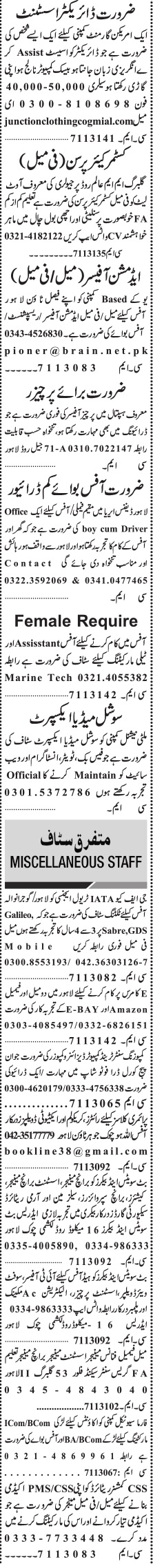 Jang Sunday Classified Ads 13 Feb 2022 For Office Staff