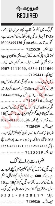 Vacant posts including marketing staff, quran teacher, pos operator, service advisor, hafiz, teacher, cook, caller helper, mechanic, salesman and electrician are announced in Private Company Lahore, lahore Punjab Pakistan as per 14 November 2022 advertisement in daily Jang Newspaper. Bachelor, Intermediate, Middle and Matric etc. educational qualification will be preferred.
