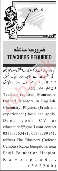 Jang Sunday Classified Ads 13 Nov 2022 For Educational Staff