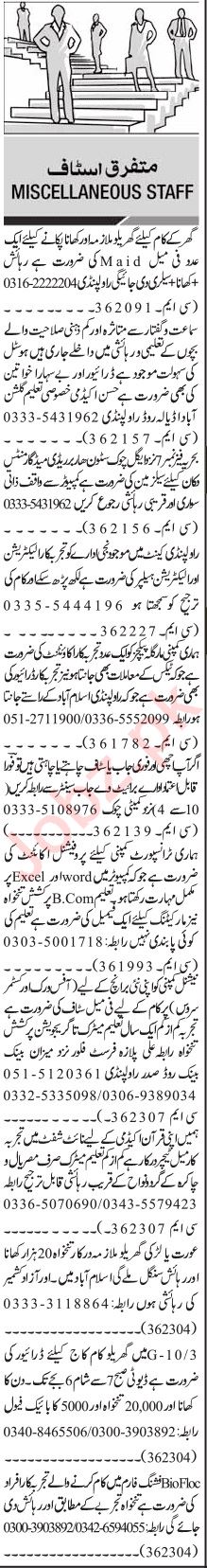 Private Company jobs advertisement dated about 14 November 2022 in daily Jang Newspaper invites application for the vacant post of teacher, chef, cook, accountant, house worker, ltv driver, salesman, maid, electrician helper, driver and electrician in Islamabad, islamabad Islamabad Pakistan. Persons with Middle, Matric, Intermediate and Bachelor etc. education can apply.