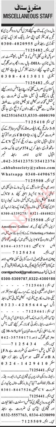 Jang Sunday Classified Ads 13 Nov 2022 For General Staff
